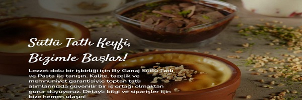 " Tatlı Anlarınıza Renk Katın, Bizimle Tatlandırın !" By Ganaj Sütlü Tatlı ve Pasta olarak, lezzetli ve yenilikçi ürünlerimizle müşterilerimize en kaliteli hizmeti sunmayı misyon edindik. Uzun yıllara dayanan tecrübemiz ve özverili çalışma anlayışımızla pastacılık sektöründe öncü bir marka olmayı hedefliyoruz. Müşterilerimize en lezzetli tatları sunmak için sürekli olarak ürün yelpazemizi genişletiyor, yeni tarifler geliştiriyoruz. Vizyon olarak en taze ve kaliteli malzemeleri kullanarak ürettiğimiz pasta, börek, kurabiye ve diğer tatlılarımızla her damak zevkine hitap ediyoruz. Güler yüzlü ve deneyimli personelimiz sayesinde her ziyaretinizde sıcak bir karşılama ve profesyonel hizmet alacağınızdan emin olabilirsiniz. Müşteri memnuniyetini her zaman ön planda tutarak, her talebi karşılamaya ve her beklentiyi aşmaya çalışıyoruz. By Ganaj Sütlü Tatlı ve Pasta olarak, sektördeki yenilikleri takip ediyor ve sürekli olarak kendimizi geliştirme gayreti içindeyiz. Müşterilerimize en iyi hizmeti sunmak için gece gündüz çalışmaya devam ediyoruz. Siz değerli müşterilerimizi lezzetli tatlarımızla buluşturmak için sabırsızlanıyoruz.